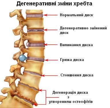 - Прояви дегенеративних змін поперекового відділу хребта