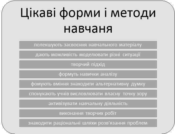 - Ігрові методи: Ігри? Чому б ні? Чуже — своє! Ігри вчать, гуртують, розважають. Хто сказав, що навчання має бути нудним?