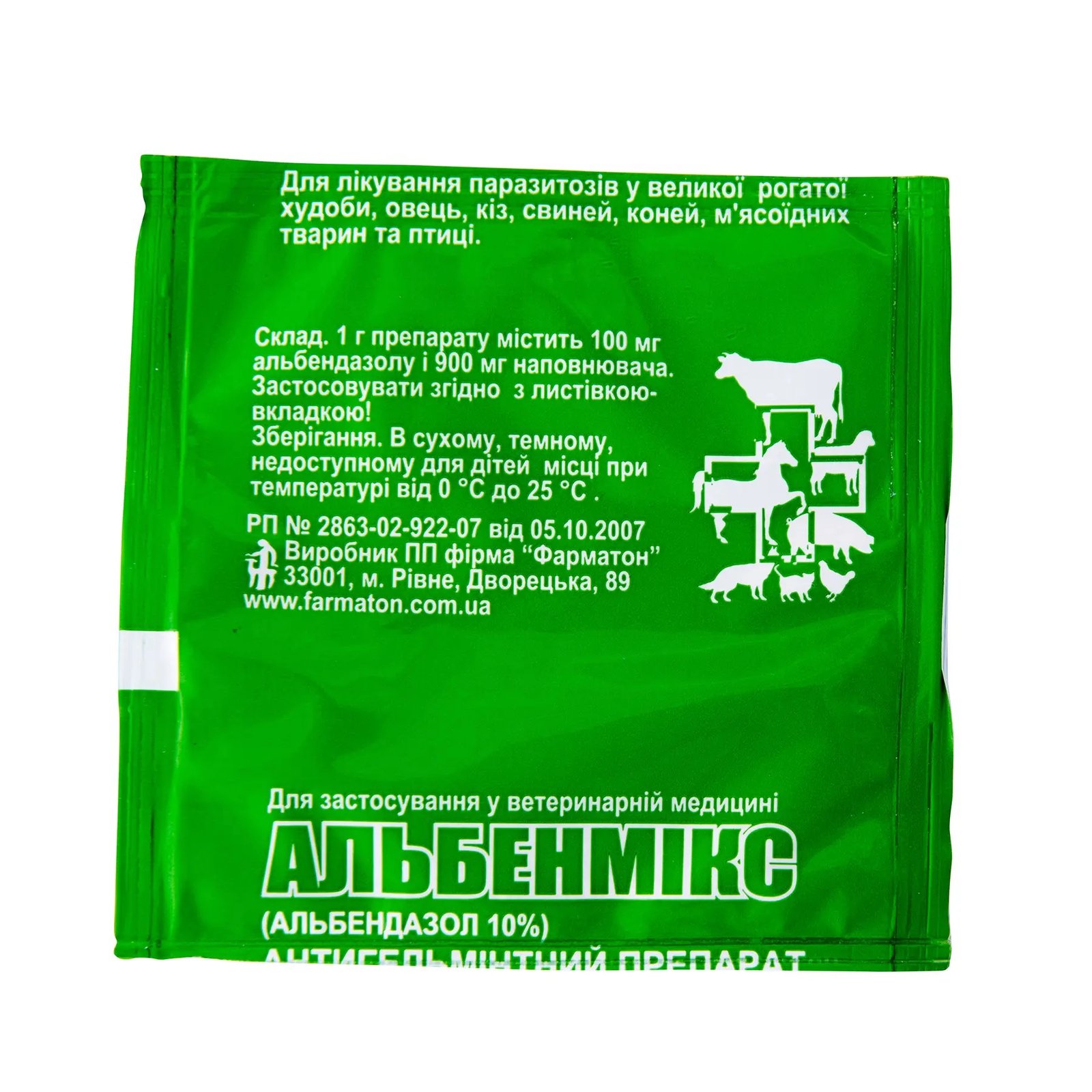 - Альбендазол — ефективний проти кількох видів черв’яків, треба лише одномоментне введення.