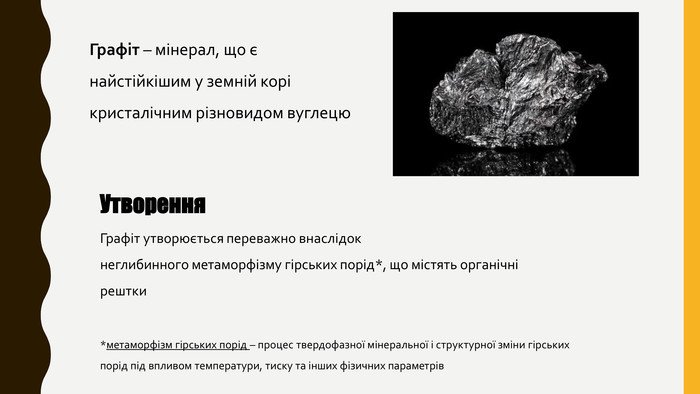 Мабуть, ви вже здогадались: це не просто твердий вуглеводень. Графіт являє собою одну з кристалічних форм вуглецю. Його атоми вишиковуються в шаруваті структури. І хоча це здається звичайним фактом, адже від графіту до іншого вуглецю — всього нічого — всього кілька атомів