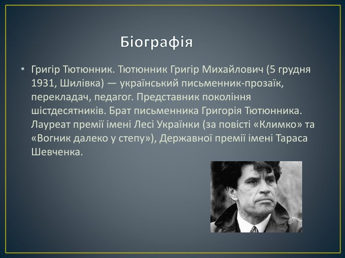 Григір Тютюнник є одним з найзначніших українських письменників, який зміг передати глибокі переживання та емоції своїх персонажів в умовах війни. Його твір “Климко” став одним з найвиразніших описів того, як дітей торкалася війна.