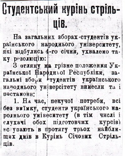 Цей підрозділ формувався як частина Армії Української Народної Республіки (УНР) в 1917 році. Він складався з молоді, зокрема київських студентів, які активно вступали у лави захисників новоствореної України.