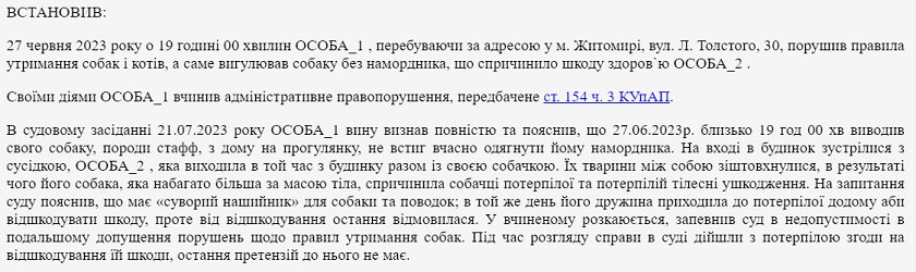 - Учасник масового заходу був затриманий поліцією за порушення громадського порядку. В ході розгляду в суді були представлені докази, включаючи відеозаписи і свідчення. Суд ухвалив рішення про покарання у вигляді штрафу.