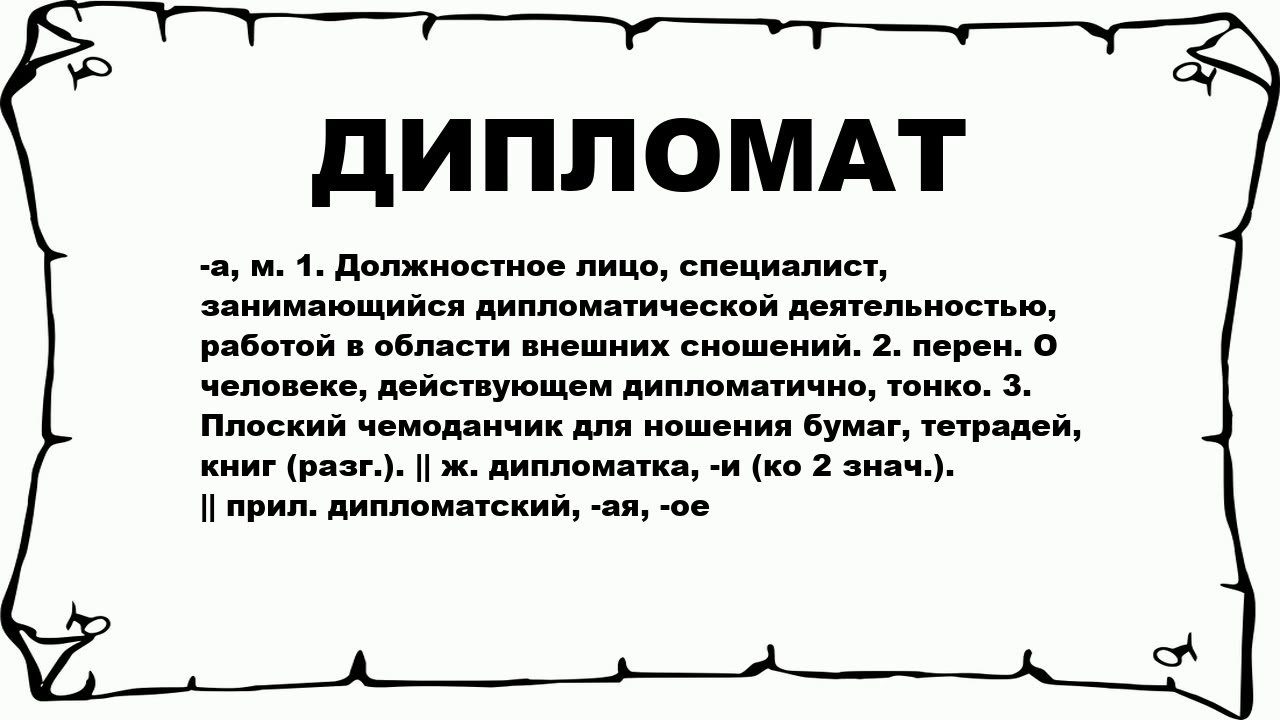 Дипломатія — це практика керування взаємовідносинами між країнами через переговори, діалог, та інші мирні способи досягнення згоди. Дипломат, в свою чергу, є представником своєї країни у вирішенні міжнародних питань і веденні переговорів. Його завдання — досягнення стратегічних цілей своєї держави, зберігаючи мир і стабільність на світовій арені.