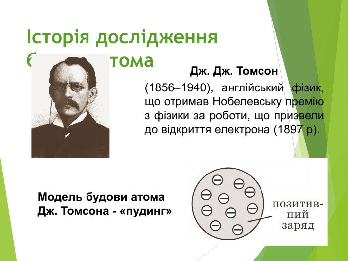 - Модель Томсона: Відомий як “пудинг з родзинками”, де електрони занурені у позитивно заряджену “пудингову” масу.