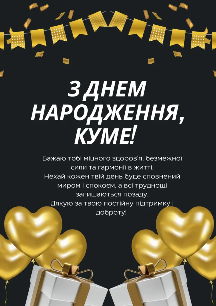 У тут і тепер! Ваш кум заслуговує на те, щоб побачити ваше вітання не тільки як картинку, а як справжнє освідчення в дружбі. Тому нехай ваше привітання з днем народження кум картинки нагадує феєрверк — яскравий і неймовірний!
