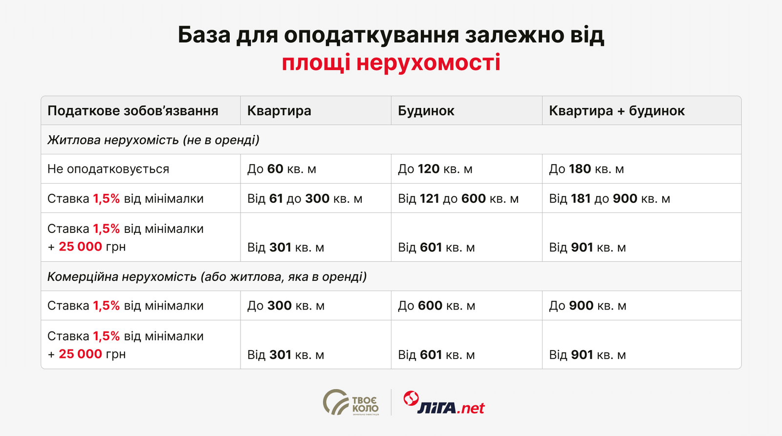 Тут усе не так просто, як здається. Розмір податку залежить від декількох факторів: площі нерухомості та ставки податку. Їх визначає місцева влада. Щороку можуть бути зміни, адже розцінки переглядаються. Рекомендується заздалегідь перевіряти актуальні ставки і не забувати про зміни, які можуть неприємно здивувати.