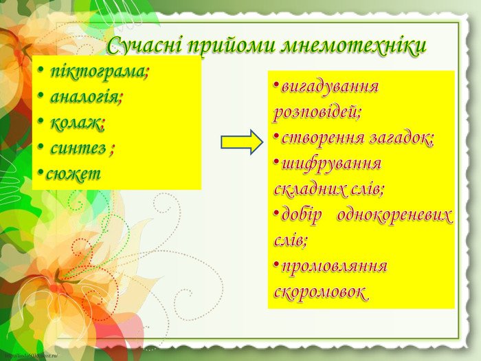 Використовуючи методи і прийоми мнемотехніки, ви не тільки покращите пам’ять, але й зміцните впевненість у своїх можливостях.