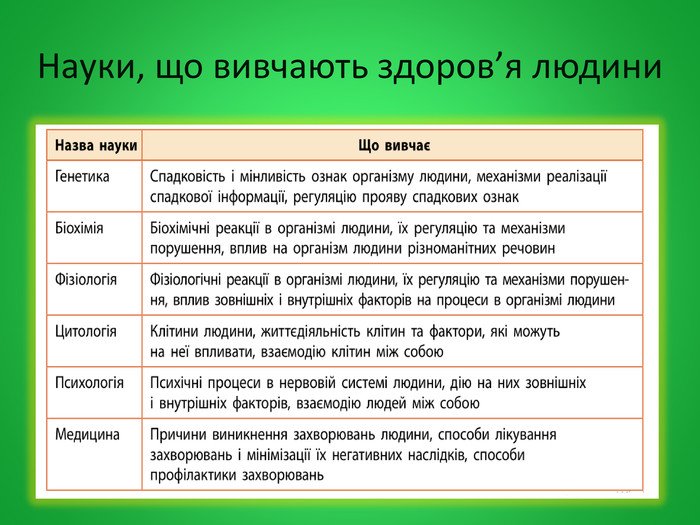 | Галузь науки | Роль у формуванні здорового способу життя |