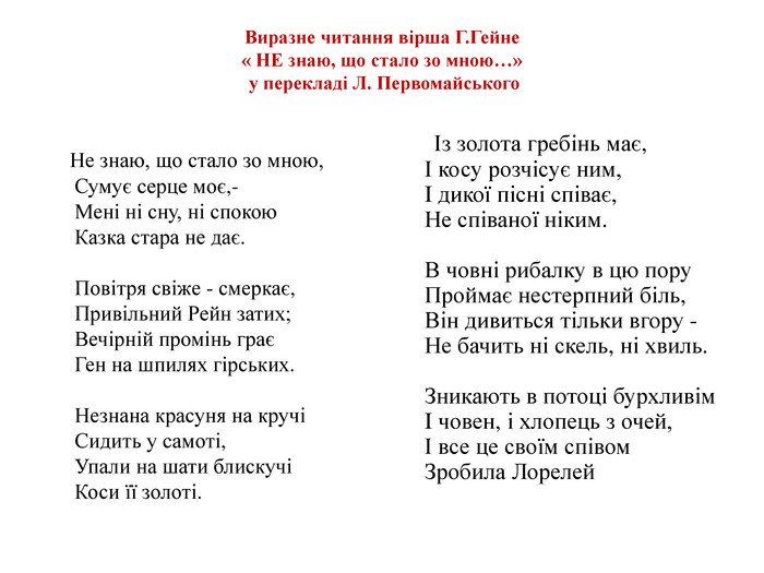 Генріх Гейне, німецький поет, відомий здатністю передавати надзвичайно глибокі почуття за допомогою простих і зрозумілих слів. Його творчість відзначається експресивністю та вразливістю. В основі багатьох його віршів лежать складні емоційні стани, близькі кожній людині, які, однак, важко окреслити та пояснити. Одним із таких творів є вірш «Не знаю що стало зо мною», який відтворює момент емоційної дезорієнтації.