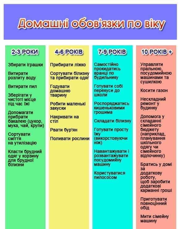 Від регіону до регіону обов’язки можуть дещо змінюватися. У великих містах діти з обов’язками частіше стають помічниками по дому. В маленьких селах — працюють на городах з молодого віку. І тут вже питання, чи це розвиває, чи надто вимотує.