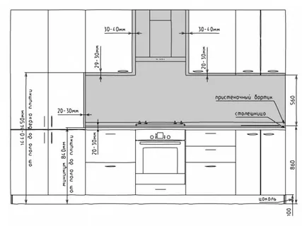 - Виміряй висоту до підвісних шаф. Отримана величина повинна вміщувати фартух.