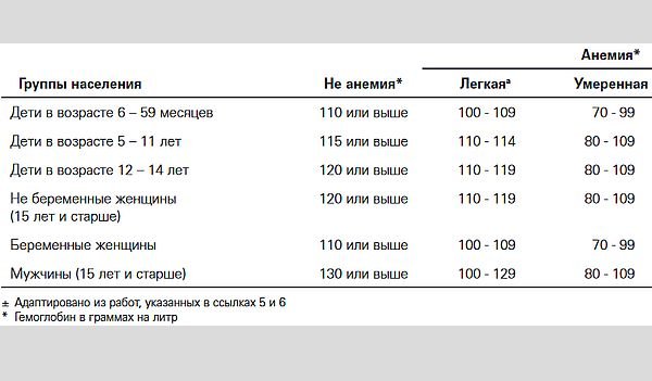 Таблиця норм гемоглобіну в дітей