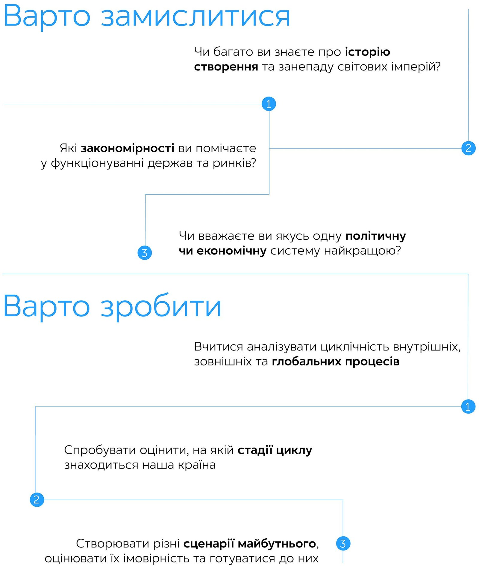 Отже, принципи зміни світового порядку виявляються як нескінченна мозаїка з безлічі взаємопов’язаних елементів. Вони стикаються, змішуються й утворюють нові форми, що ведуть до нових викликів та можливостей. Які тоді можемо зробити висновки?
