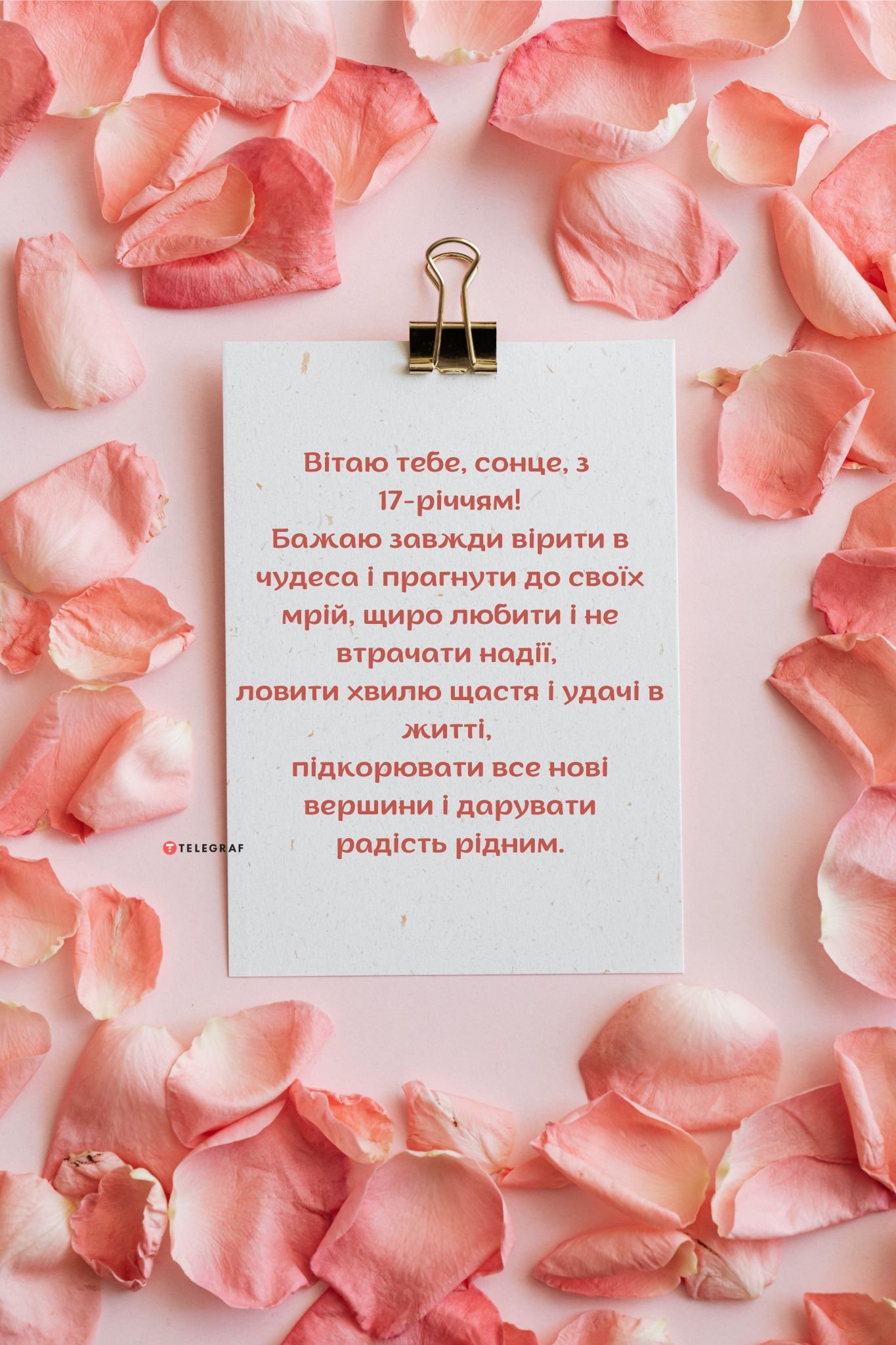 Так, це правда! Вітати когось із сімнадцятиріччям — це не просто традиція, а справжня магія моменту. У цьому віці життя дарує безліч вражень, нових друзів, щасливих випадковостей. І хочеться знайти ті самі, особливі слова, які б надихнули та зігріли серце.
