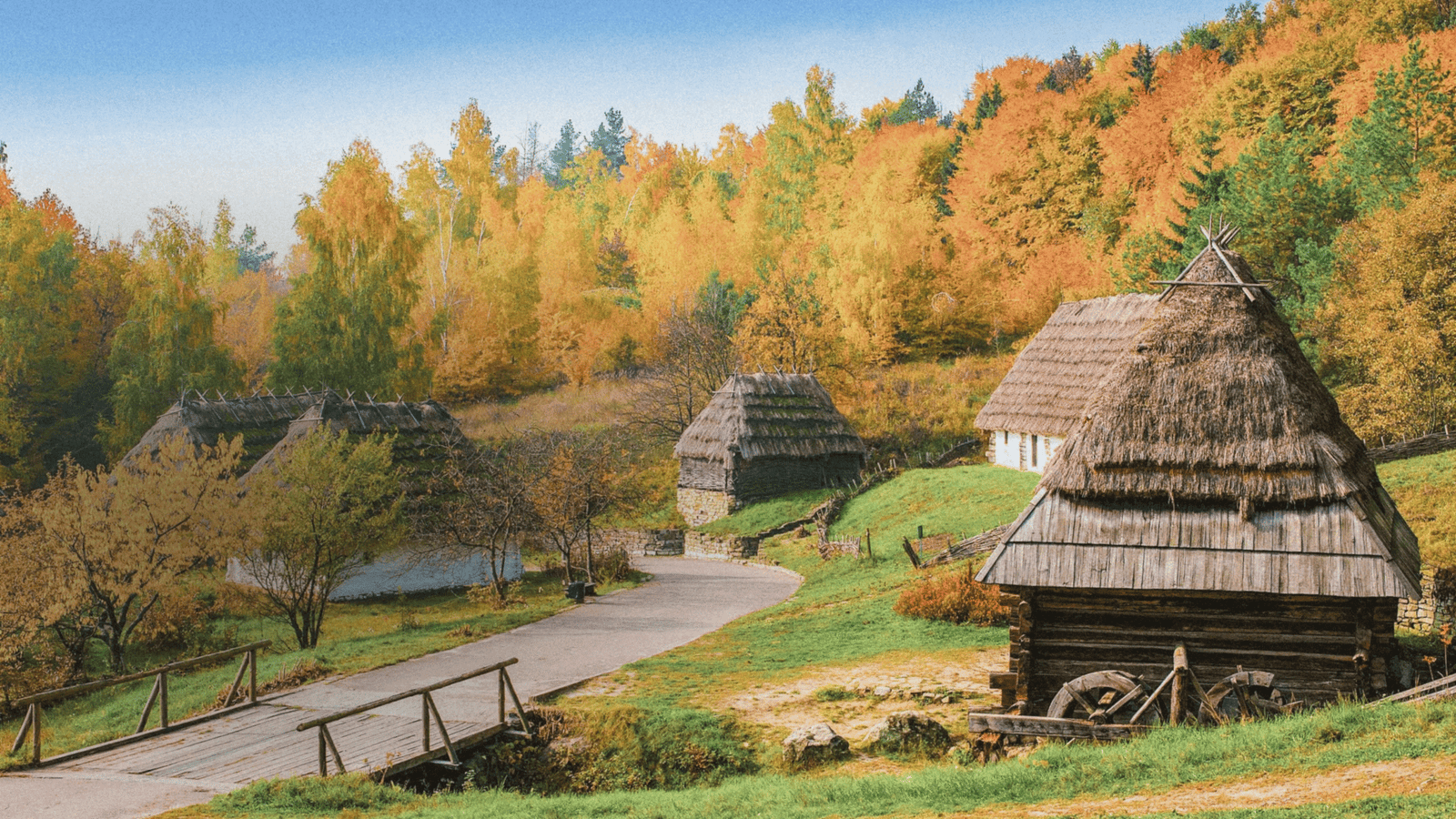 - Українське село: Хати, виконані в традиційних архітектурних стилях різних регіонів України. Вони відображають дух і побут жителів, кожна з яких є справжнім мистецтвом.