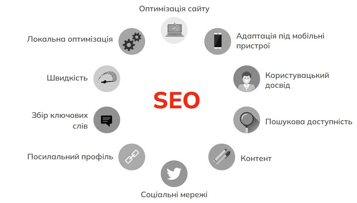 - Мобільне SEO: оптимізація сайту під мобільні пристрої, що враховує швидкість завантаження, адаптованість інтерфейсу та мобільну зручність.