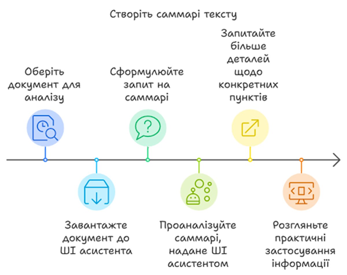 Ось декілька прикладів, як саме саммарі текстів, створене ШІ, може використовуватися: