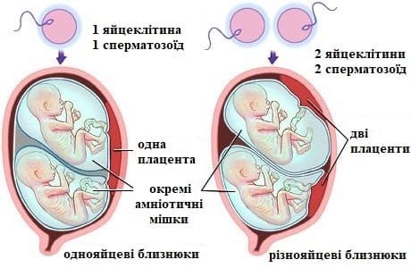 - Двійнята: Народження двійнят стається тоді, коли в одному менструальному циклі жінки дозрівають і запліднюються дві яйцеклітини. Дуже схоже на звичайну вагітність, але відразу з двома плодами.