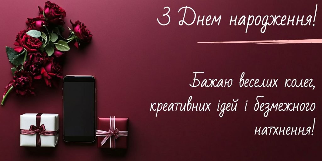 Привіт, наш дорогий колего! На календарі – особливий день, твій день народження. Це день, коли весь світ, здається, зупиняється, щоб відзначити твоє існування. Ти — той, хто об’єднує нашу команду, той, на кого завжди можна покластися. Зараз саме той час, щоб сказати тобі величезне “дякую”. Ти наш вічний натхненник, майстер з підняття настрою та життєва опора. З днем народження! Бажаємо тобі успіху у всіх починаннях, щоб кожна твоя задумка ставала реальністю. Нехай робота приносить радість та задоволення.