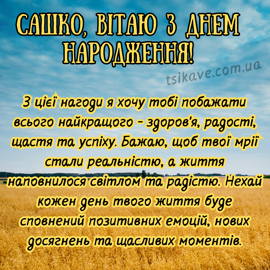 Лише одного: нехай цей день буде наповнений любов’ю, теплом і щирістю. Нехай все задумане здійснюється як за помахом чарівної палички. З днем народження, Олександр!