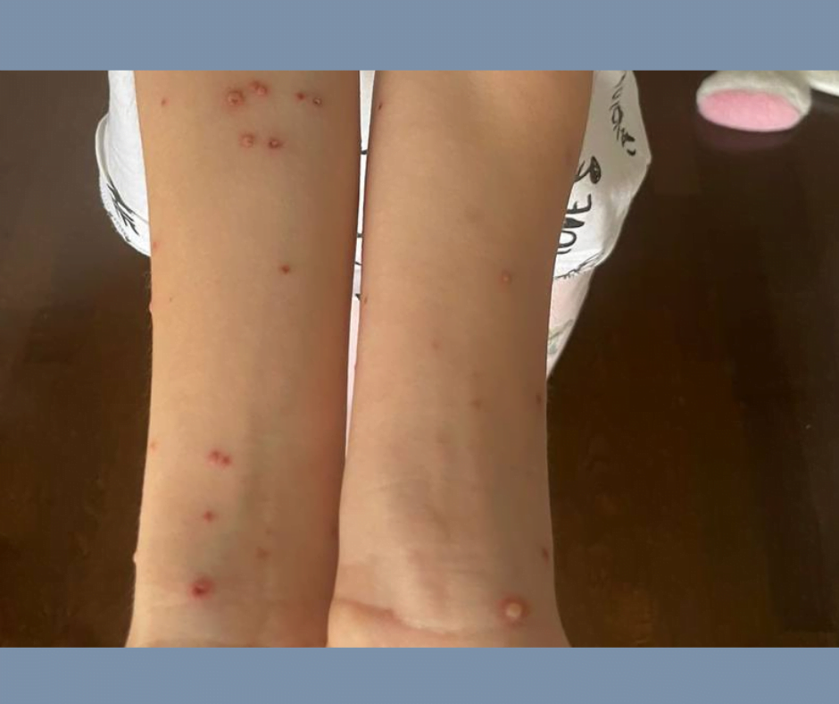 Червоні цятки. Так, вони першими нагадують про проблему. Але це ще не все. Спочатку з’являються невеликі пухирці, які розповсюджуються по всьому тілу. Часом здається, що вони мають свій маленький план захоплення світу тіла дитини. Уже через декілька днів перетворюються на скоринки. Все це супроводжується свербежем, та ще яким! Терпіти важко, але дерти — суворо заборонено.