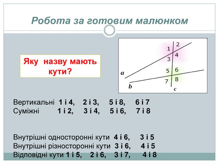 - Кут на іншій прямій праворуч.