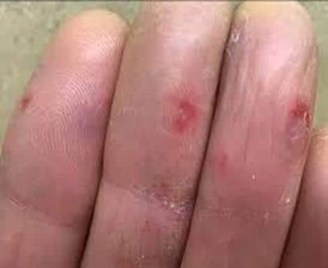 - Червоні плями або пухирці