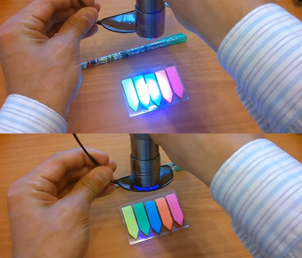 - Використання ультрафіолетової лампи. Це захоплююче, повірте. Ви просто підносьте окуляри до ультрафіолетового джерела і дивитесь, чи змінюється освітлення.