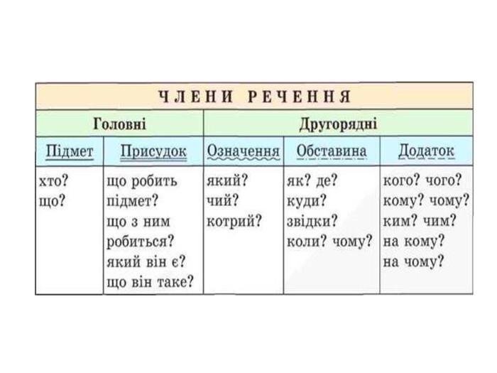 - Особові займенники: я, ти, він, вона, воно, ми, ви, вони.