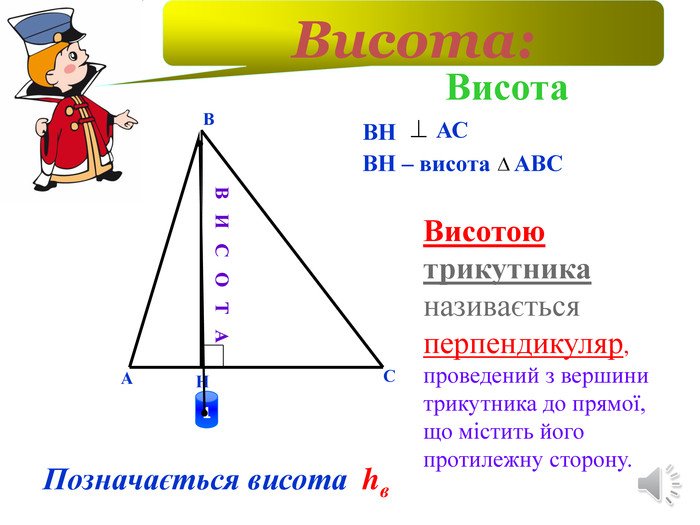 Щоб зрозуміти, як позначається висота у трикутнику, розглянемо наступні властивості: