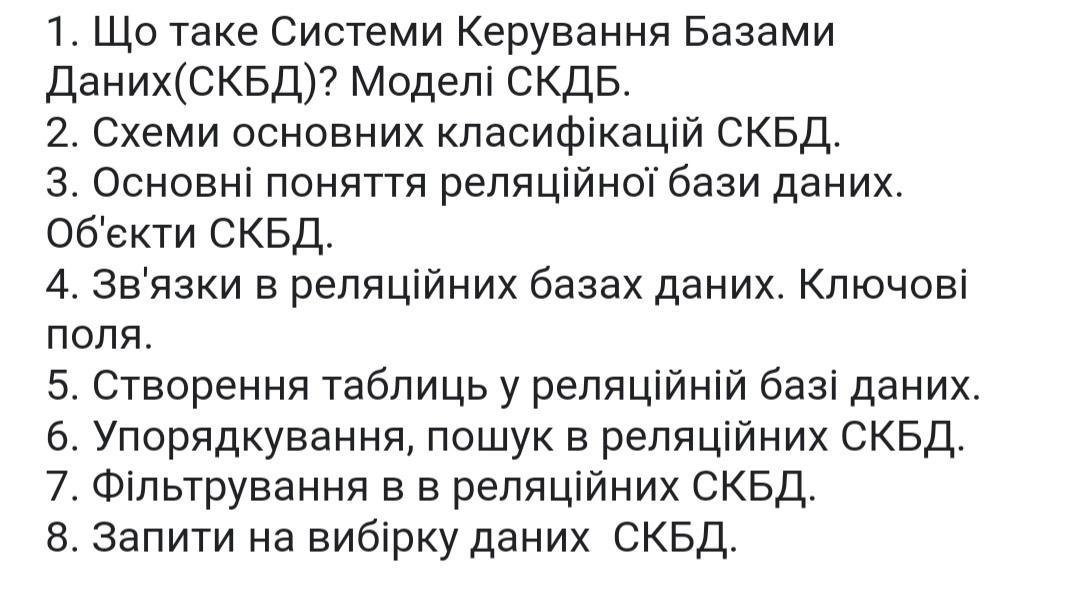 - Залежність від типу даних: Не кожен тип СКБД підходить для роботи з всіма типами даних.