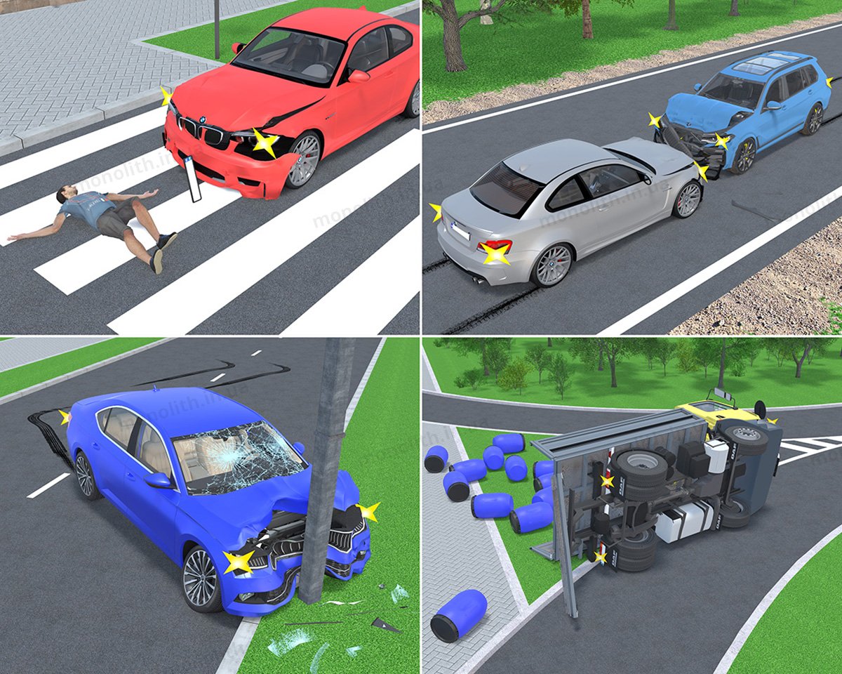 | Наїзд на перешкоду | Випадок, коли транспортний засіб наїжджає на нерухому перешкоду, наприклад, огорожу чи будівлю. |