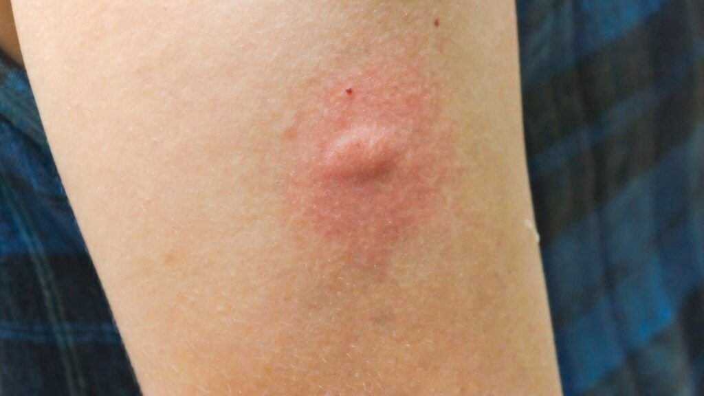 - Почервоніння та набряк: Область укусу часто виглядає почервонілою, з вираженим набряком.
