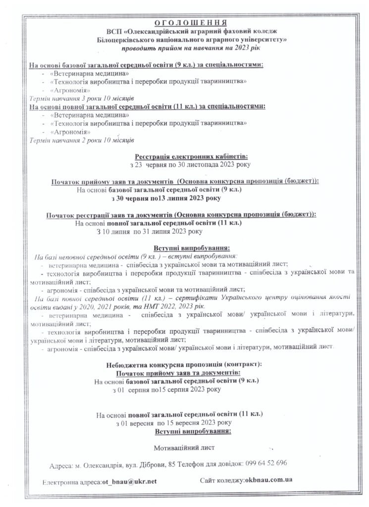 Є специфічні моменти, які залежать від вашої обраної спеціалізації у коледжі. Певні напрямки можуть вимагати екстра документи.