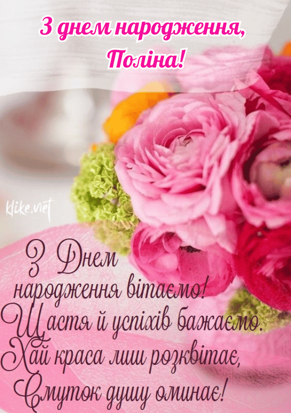 З днем народження, Поліна! Цей день особливий — він у твоїй честь. Щороку ти святкуєш з друзями, рідними та всіма, хто любить тебе. Сьогодні твоє ім’я лунає всюди. І ми тут, щоб зробити цей день незабутнім. Коли навколо лунають привітання і побажання, найліпше — відчути себе найважливішою.