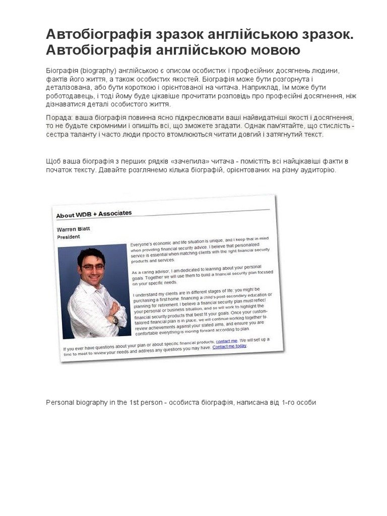 Біографія на англійській мові зразок: як створити ідеальний текст